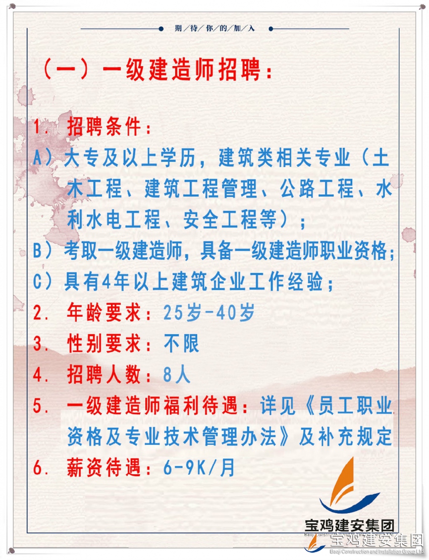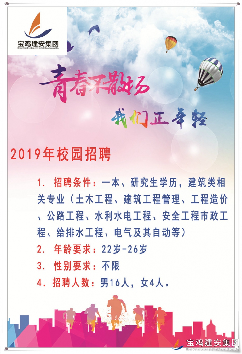 寶雞建安集團(tuán)股份有限公司2019年招聘火熱進(jìn)行中......