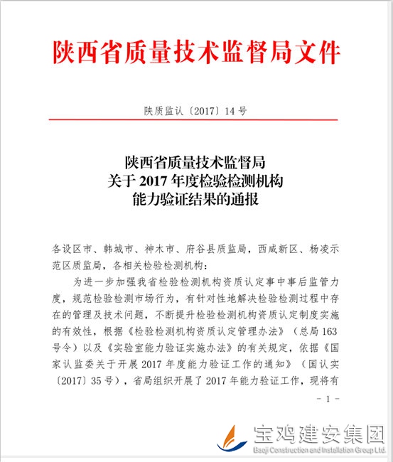 2017年12月14日從陜西省質(zhì)量技術(shù)監(jiān)督局文件獲悉,我公司參與省局組織開展的2017年能力驗(yàn)證的兩個項(xiàng)目順利通過。截止目前,我公司已參與本年度能力驗(yàn)證項(xiàng)目為四項(xiàng),結(jié)果均為“滿意”,此結(jié)果意味著2年時間內(nèi)我們在接受省局資質(zhì)認(rèn)評評審時可免于此四個項(xiàng)目的現(xiàn)場試驗(yàn),并作為政府部門安排檢測任務(wù)時優(yōu)先考慮的機(jī)構(gòu)。   公司領(lǐng)導(dǎo)近幾年結(jié)合國家供給側(cè)政策的出臺,著手打造真信品牌,靠技術(shù)和服務(wù)立足市場,多次邀請行業(yè)內(nèi)專家、高校老師來公司授課,同時把提升試驗(yàn)技術(shù)人員實(shí)操能力作為工作核心,通過一系列的措施和員工的不懈努力,廣大技術(shù)人員的能力得到大力提升。2016年年底我公司技術(shù)人員憑借自己精湛的技能,主動請纓,自愿參與由交通運(yùn)輸部組織的瀝青針入度和軟化點(diǎn)的比對試驗(yàn),這是我們在技術(shù)上在全國范圍內(nèi)的第一次大膽嘗試,參賽技術(shù)人員不僅要對規(guī)范熟識更要操作手法精準(zhǔn),才能保證數(shù)據(jù)的準(zhǔn)確可靠,在群英薈萃的參賽單位中我們脫穎而出。   在上年度成績基礎(chǔ)上,2017年我們在技能比武中碩果累累,再創(chuàng)佳績。今年6月份參加陜西省交通廳組織的由全省公路綜合甲級、綜合乙級和橋隧專項(xiàng)的檢測機(jī)構(gòu)參與的“鋼筋位置及保護(hù)層厚度比對試驗(yàn)”中,不僅比對結(jié)果為“滿意”(比對結(jié)果設(shè)“滿意”、“基本滿意”、“不滿意”),而且在54家參與機(jī)構(gòu)中脫穎而出,得到省交通廳專家認(rèn)可,他們認(rèn)為我們的技術(shù)人員操作熟練、定位精確、數(shù)據(jù)準(zhǔn)確。   在交通行業(yè)嶄露頭角后,我們又在省質(zhì)量技術(shù)監(jiān)督局組織的能力驗(yàn)證中勇奪桂冠。在參與的“粉煤灰”、“鋼筋混凝土保護(hù)層厚度檢測”和“電線電纜導(dǎo)體直流電阻測試”三個項(xiàng)目中,我們均是一次通過,通過率位居全省檢測行業(yè)榜首。   參與以上比對試驗(yàn)、能力驗(yàn)證工作的技術(shù)人員累計達(dá)到十余人,占技術(shù)人員總數(shù)約30%,他們是各項(xiàng)目的技術(shù)帶頭人,是領(lǐng)導(dǎo)在慎重考慮后的杰出人選,他們在接受任務(wù)后,服從領(lǐng)導(dǎo)的工作安排,頂著巨大的壓力,以公司利益至上,團(tuán)結(jié)一致、克難攻關(guān),最終獲得佳績。   參加比對和能力驗(yàn)證工作,確保了我公司檢測設(shè)備檢測數(shù)據(jù)準(zhǔn)確性和有效性,對公司自身質(zhì)量控制和能力水平也是一種認(rèn)可,對進(jìn)一步鞏固公司在全省檢測機(jī)構(gòu)中的相對優(yōu)勢地位起到積極作用。   今年是真信建司參與各種比對、能力驗(yàn)證項(xiàng)目參與次數(shù)最多的一年,且是成績最優(yōu)秀的一年。這些成績的獲得,與公司領(lǐng)導(dǎo)堅持將“真信檢測”打造成一流檢測機(jī)構(gòu)的理念息息相關(guān),更與員工堅持不懈的努力密不可分。