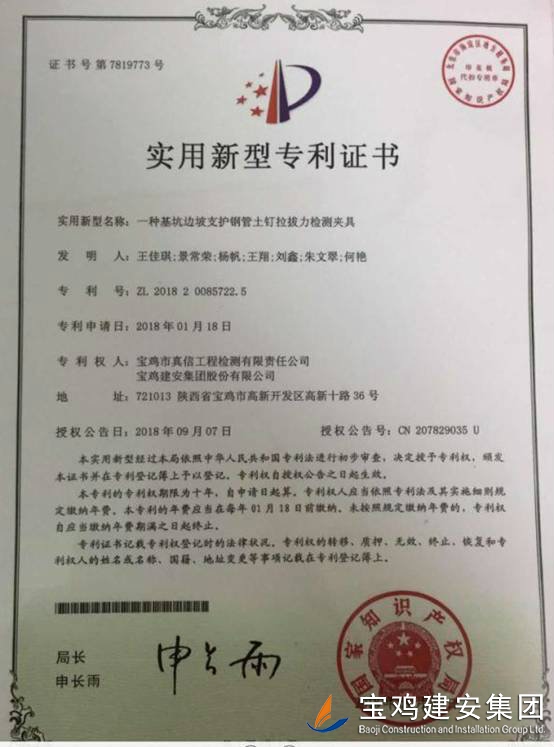 近日,由真信公司“楊帆創(chuàng)新工作室”自主研發(fā)的《一種基坑邊坡支護(hù)鋼管土釘拉拔力檢測(cè)夾具》獲得國(guó)家知識(shí)產(chǎn)權(quán)局批準(zhǔn),正式頒發(fā)實(shí)用新型專用證書(shū)!(專利號(hào):ZL 2018 2 0085722.5)     這是我們真信公司建司18年來(lái),也是我們單位建室48年來(lái),第一個(gè)國(guó)家級(jí)發(fā)明專利,具有里程碑的意義!真信公司長(zhǎng)期以來(lái)以“打造學(xué)習(xí)、創(chuàng)新型的團(tuán)隊(duì)”為目標(biāo),在日常的工程檢測(cè)工作中,不斷去探索、發(fā)現(xiàn)問(wèn)題,及時(shí)的優(yōu)化,創(chuàng)新。     2017年9月,在公司的批準(zhǔn)及大力支持下,以楊帆同志命名的“楊帆創(chuàng)新工作室”正式成立了!工作室以“科學(xué)、嚴(yán)謹(jǐn)”為宗旨,以“解決日常檢測(cè)工作中遇到的頑疾,提高檢測(cè)工作效率及準(zhǔn)確性”為目標(biāo),正式投入到實(shí)用新型產(chǎn)品的研發(fā)之中。     土釘墻在工程中較多見(jiàn),其主要是用于工程前期邊坡支護(hù)的工程,以防邊坡失穩(wěn)造成的邊坡塌方對(duì)人員生命財(cái)產(chǎn)安全及工程進(jìn)度造成損失。目前市場(chǎng)上檢測(cè)土釘?shù)睦蝺x和配套的夾具絕大部分是針對(duì)鋼筋土釘拉拔力設(shè)計(jì)的,而未涉及到鋼管土釘拉拔力專用夾具,從而未能對(duì)其進(jìn)行檢測(cè),以至于不能有效的將檢測(cè)數(shù)據(jù)反饋給建設(shè)單位及設(shè)計(jì)單位來(lái)進(jìn)行指導(dǎo)施工和結(jié)果評(píng)判。這個(gè)問(wèn)題長(zhǎng)期以來(lái)困擾著廣大檢測(cè)工作者,給檢測(cè)工作及工程施工造成了諸多不良影響,創(chuàng)新,勢(shì)在必行!       作為工作室的首個(gè)研發(fā)項(xiàng)目,成員們克服日常工作任務(wù)繁重的困難,多次深入施工現(xiàn)場(chǎng),親身體會(huì),不斷地去嘗試,思索。在模具的制作過(guò)程中,為了讓產(chǎn)品更好的發(fā)揮出“實(shí)用型”的效果,工作室負(fù)責(zé)人楊帆同志多次前往加工車間,與技術(shù)人員緊密溝通,多次親自上手?;氐絾挝唬ぷ鹘M即刻展開(kāi)交流學(xué)習(xí),在電腦上反復(fù)的推敲、勾畫(huà)……                      (寶雞真信工程檢測(cè)有限責(zé)任公司  秦建偉)