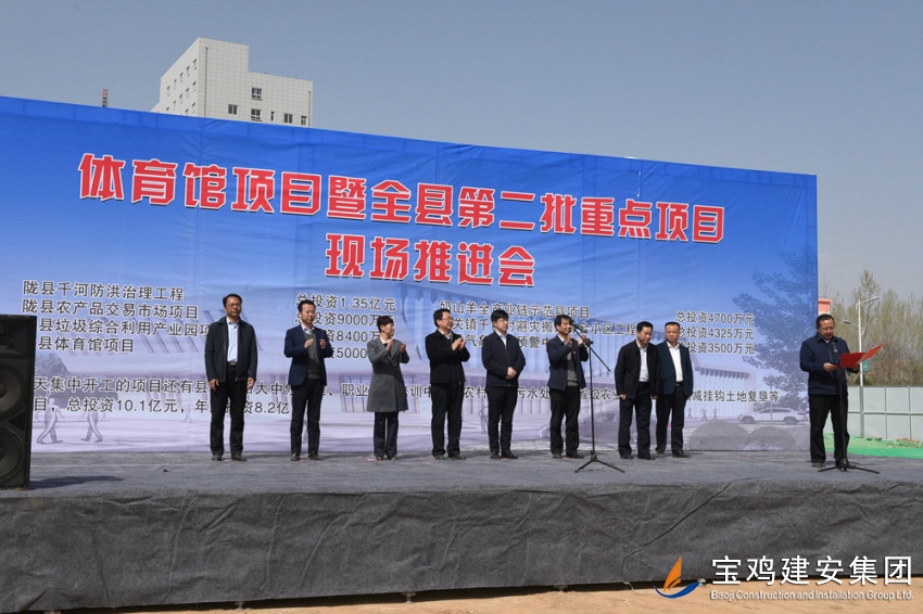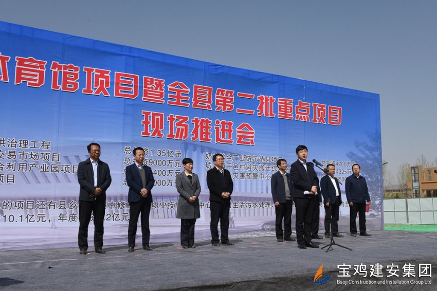 3月29日上午,在隴縣實驗中學(xué)旁的工地現(xiàn)場隆重舉行了“隴縣體育館項目暨全縣第二批重點項目現(xiàn)場推進會”。在推進會現(xiàn)場將聳立起宏偉的隴縣體育館,該體育館由寶雞建安集團股份有限公司第十三項目經(jīng)理部承建。隴縣第二批重點項目各級代表、施工各相關(guān)單位代表等200多人參加推進會。     推進會上,寶雞市政府副市長高建華,隴縣教體局黨委書記、局長石達凱,寶雞建安集團股份有限公司董事長景常榮等領(lǐng)導(dǎo)發(fā)表重要講話。     隴縣體育館建設(shè)項目是縣委、縣政府貫徹落實《全民健身計劃(2016—2020年)》、提升全民健身硬件水平的重大工程,是加快全縣經(jīng)濟社會發(fā)展步伐、提升群眾幸福指數(shù)的一項重大舉措。該項目是由西安建筑科技大學(xué)建筑設(shè)計研究院設(shè)計,陜西中天巖土工程勘測有限公司勘測,寶雞建安集團股份有限公司承建,陜西方得項目管理有限公司監(jiān)理。隴縣體育館的建設(shè),將極大的提升隴縣體育基礎(chǔ)設(shè)施水平,滿足舉辦和承辦省、市、縣室內(nèi)體育比賽活動的需求,為提升隴縣全民健身水平、推動經(jīng)濟社會追趕超越發(fā)展奠定了堅實的基礎(chǔ)。         副市長高建華強調(diào),發(fā)展是硬道理,項目是硬支撐,隴縣各級要以此次項目開工建設(shè)為新契機,把項目建設(shè)放在更加突出的位置。一要抓項目開工,加快推進各項前期工作,全力破解資金、拆遷、用地等難題,做到開工項目真開、實開,確保圓滿完成年度投資任務(wù)。二要抓招商引資,增強招商工作的責(zé)任感,圍繞縣域特點和優(yōu)勢,精心策劃一批高質(zhì)量招商項目,力爭項目引進有新突破。三要優(yōu)化服務(wù),堅定不移推進“放管服”改革,不斷優(yōu)化營商環(huán)境,統(tǒng)籌各方力量,協(xié)調(diào)各方資源,以優(yōu)質(zhì)高效的服務(wù)、優(yōu)良的營商環(huán)境,匯聚起推動項目建設(shè)的強大合力。     寶雞建安集團董事長景常榮講到,隴縣體育館項目是我司今年承接的結(jié)構(gòu)特殊、跨度較大、專業(yè)性強、施工難度較大的重要工程之一,我們將以高度的責(zé)任感和使命感,運用全新的管理理念,發(fā)揚工匠精神,狠抓工程質(zhì)量。一要緊緊圍繞項目建設(shè)任務(wù),組建強有力的施工班子,按照項目建設(shè)計劃,嚴密組織、嚴格控制,嚴守工期,凝神聚力,大干快上,確保項目如期推進,按時交工投用。二要以精細化管理為手段,以100%工序驗收合格為目標,牢固樹立建設(shè)精品工程的理念,按照規(guī)范化施工標準,把控好每個施工環(huán)節(jié)和工序,努力創(chuàng)建優(yōu)質(zhì)工程、精品工程。三要堅持“安全第一,預(yù)防為主,綜合治理”的安全管理方針,結(jié)合實際完善安全管理措施,加強安全培訓(xùn),全方位、多層次,認真細致地將安全責(zé)任落實到工程建設(shè)的每一個環(huán)節(jié),確保工程建設(shè)零事故、零污染。     寶雞建安集團股份有限公司將以隴縣體育館項目為契機,在隴縣縣委、縣政府的關(guān)心支持下,在各級領(lǐng)導(dǎo)的盡力幫助下,有社會各界的熱忱關(guān)注下,我們一定保質(zhì)、保量、安全、如期完成隴縣體育館建設(shè)任務(wù)。把寶雞建安集團“誠實守信、追求卓越、科學(xué)管理、開拓創(chuàng)新、鑄造精品、奉獻社會”的管理方針再次夯實;為寶雞建安集團的企業(yè)品牌建設(shè)再添羽翼。  (單位:第十三項目部  通訊員:曹美婷)