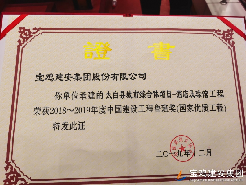 睽違三十載,喜開二度梅。12月10日,從北京會(huì)議中心傳來(lái)喜訊,由寶雞建安集團(tuán)承建的太白縣城市綜合體項(xiàng)目—酒店及球館工程,在全國(guó)建筑行業(yè)精品工程最高獎(jiǎng)項(xiàng)大比拼的激烈角逐中,力挫群雄,脫穎而出,最終摘得2018--2019年度中國(guó)建設(shè)工程魯班獎(jiǎng)(國(guó)家優(yōu)質(zhì)工程)桂冠,這也使寶雞建安集團(tuán)成為繼法門寺重建工程獲得寶雞第一個(gè)建筑魯班獎(jiǎng)后,時(shí)隔近30年再次奪得“魯班獎(jiǎng)”的企業(yè),從而書寫了建筑行業(yè)頂級(jí)獎(jiǎng)“梅開二度”的傳奇!