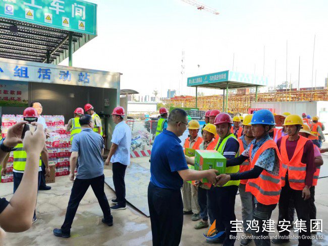 7月18日上午,寶雞高新區(qū)管委會(huì)黨工委委員、管委會(huì)副主任楊海翔,高新區(qū)總工會(huì)主席李廣強(qiáng),區(qū)教育系統(tǒng)黨委書記、教育體育局局長(zhǎng)唐宏,副局長(zhǎng)劉輝等一行領(lǐng)導(dǎo),前往建安集團(tuán)承建的寶雞高新第三幼兒園建設(shè)項(xiàng)目工地,走訪慰問(wèn)一線員工,開展“夏送清涼”活動(dòng)。