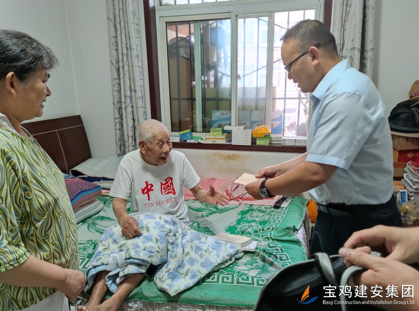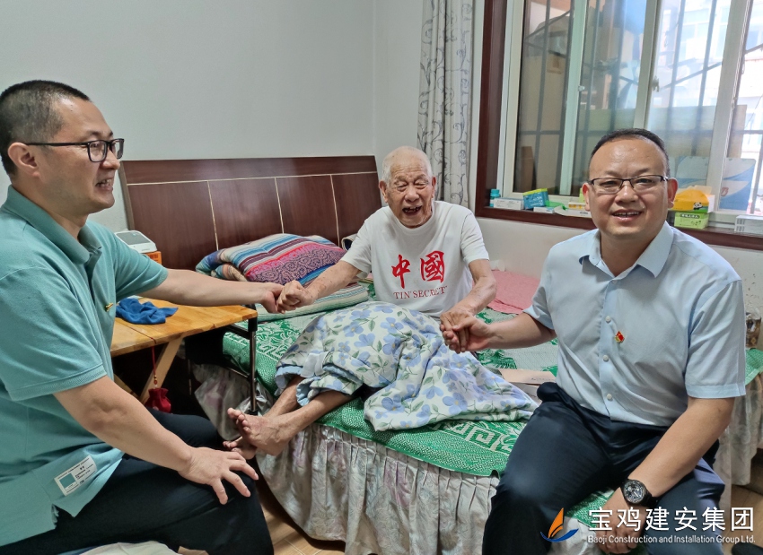 在建黨103周年之際,公司黨委副書記胥永寧帶著市委組織部及集團(tuán)黨委的親切關(guān)懷與誠摯問候,對(duì)建國前入黨的老黨員荊玉華同志進(jìn)行了慰問。 在荊玉華同志家里,97歲高齡的荊師傅拖著年邁的身體從床上坐起來,熱情地和大家打招呼。胥書記詳細(xì)詢問了老前輩的健康狀況及日常起居,將組織的關(guān)愛及慰問帶給了荊玉華同志,并叮囑這位老黨員一定要保重身體,健康長壽。