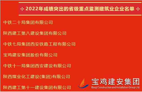 近日,陜西省建筑業(yè)協(xié)會(huì)發(fā)出通知,對(duì)全省26家“成績突出的省級(jí)重點(diǎn)監(jiān)測建筑業(yè)企業(yè)”進(jìn)行通報(bào)嘉獎(jiǎng),寶雞建安集團(tuán)股份有限公司榜上有名。        過去一年,面對(duì)新冠疫情沖擊、經(jīng)濟(jì)下行壓力加大、國內(nèi)外發(fā)展環(huán)境不確定性上升等超預(yù)期因素,包括寶雞建安集團(tuán)股份有限公司在內(nèi)的全省住建系統(tǒng),堅(jiān)持以習(xí)近平新時(shí)代中國特色社會(huì)主義思想為指導(dǎo),認(rèn)真學(xué)習(xí)貫徹黨的二十大精神,堅(jiān)決落實(shí)省委、省政府在穩(wěn)增長工作中的決策部署和工作要求,堅(jiān)持穩(wěn)字當(dāng)頭、穩(wěn)中求進(jìn),強(qiáng)化政策指引,細(xì)化工作措施,提升服務(wù)效能,順利實(shí)現(xiàn)建筑業(yè)產(chǎn)值穩(wěn)步增長,歷史首次突破萬億元大關(guān)。