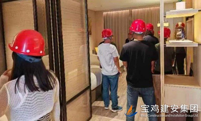來(lái)訪人員首先闡明了此行的目的和意義,我單位相關(guān)管理人員針對(duì)隴縣海棠酒店項(xiàng)目特征、在建情況、建成后主要建筑功能,向各位嘉賓進(jìn)行了詳細(xì)介紹。隨后在安裝一公司現(xiàn)場(chǎng)管理人員陪同下,對(duì)隴縣海棠酒店已成型樣板間,廚房、大堂及地下車庫(kù)等工程重點(diǎn)建設(shè)部位進(jìn)行實(shí)地參觀考察。我公司管理人員對(duì)西建集團(tuán)、陜西省建筑設(shè)計(jì)院同仁提出的專業(yè)問(wèn)題給予了耐心解答,在輕松友好的氣氛中,嘉賓對(duì)我公司施工項(xiàng)目質(zhì)量及企業(yè)綜合實(shí)力表達(dá)了高度認(rèn)可與肯定。
